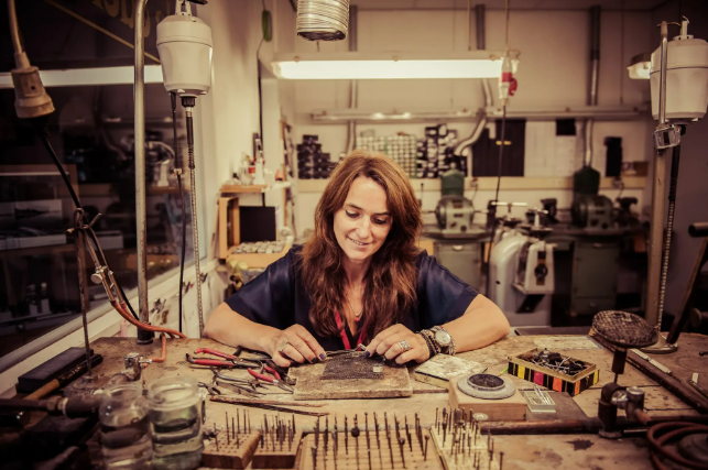 trots over haar team, waarvan sommigen al jarenlang bij haar zijn. "De twee goud-smeden die hier nu werken, zaten vroeger zelfs bij mij in de klas in Schoonhoven. We zijn samen een team dat goud waard is."